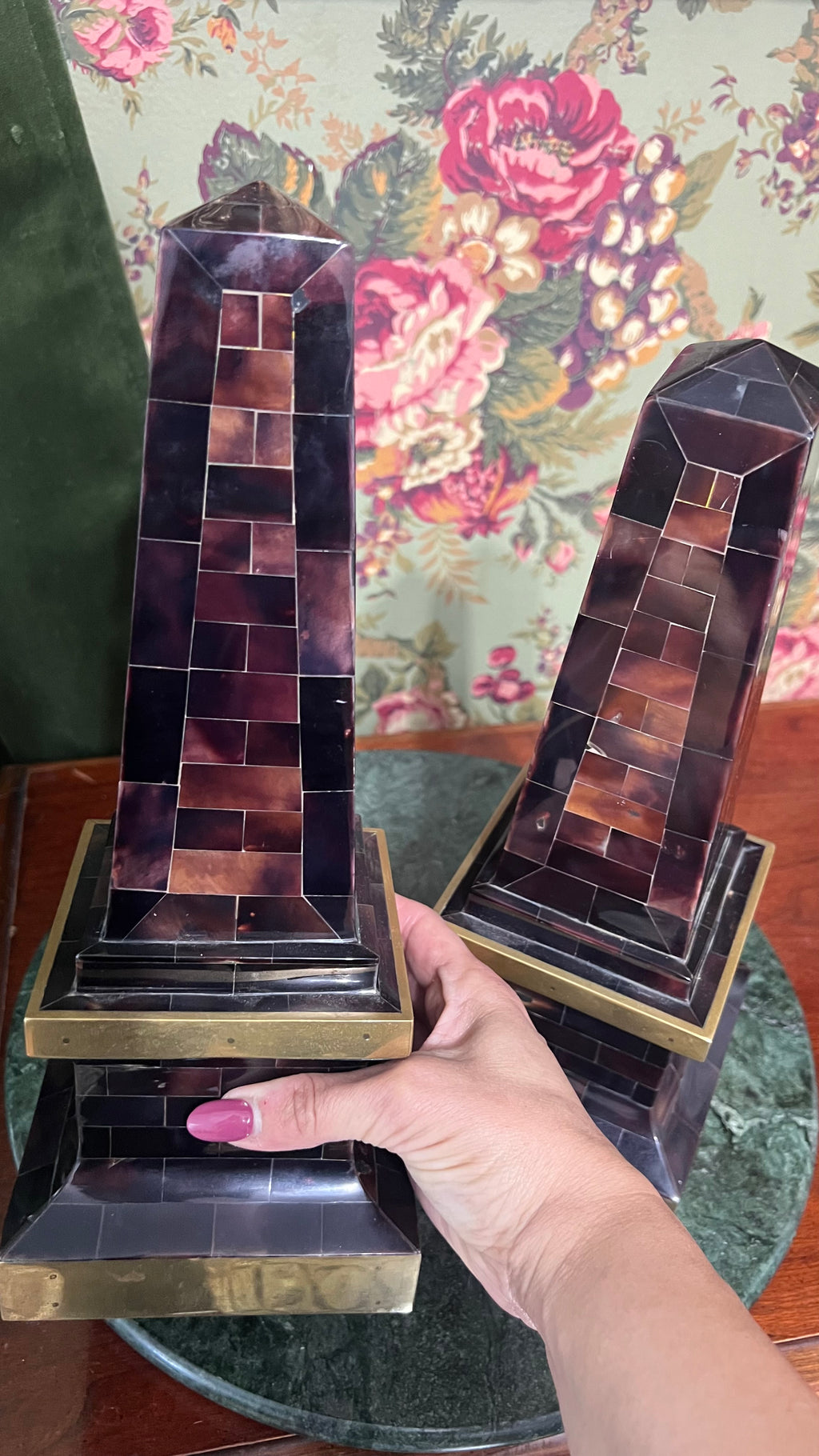 These are gorgeous tortoise shell tone tessellated horn obelisks by Maitland Smith